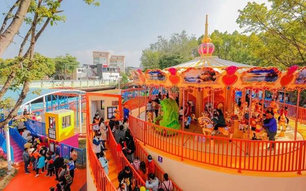 儿童乐园中的动力游乐设施占地面积较大,单次可容纳的人数多,游戏体验更加丰富、刺激、有趣,也可以取得经济收益。最理想的设计就是将大型游乐设施与整个场地融合起来形成景观,而不是单独的机器。因室外露天环境较复杂多变,因此设计师必须考虑后期动力设施的养护与维修等问题,避免设施因老化等问题造成危险。