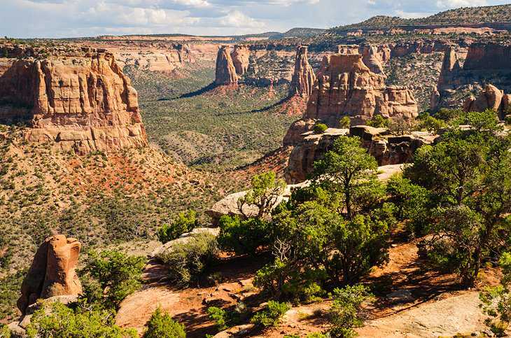 就在大章克申镇外,附近的Fruita是科罗拉多国家纪念碑。一条风景优美的道路蜿蜒穿过一些优美的风景。这不是典型的山地风光,而是巨大的岩石尖顶,悬崖壁,峡谷和沙漠般的环境,小树和灌木丛。大多数人沿着Rim Rock Drive沿着纪念碑行驶,并停在俯瞰下方景观的了望台上。这条路也是一个受欢迎的公路自行车区,酣畅淋漓的灵魂一直在前往观景台。许多日间徒步旅行通往纪念碑的一些风景区,其中大部分涉及中等高度变化,范围从大约300英尺到超过1,000英尺。