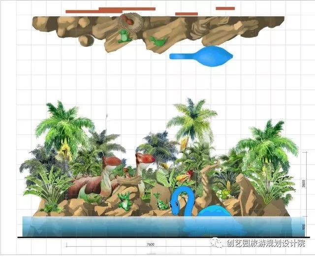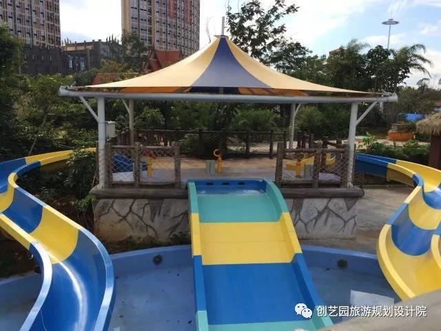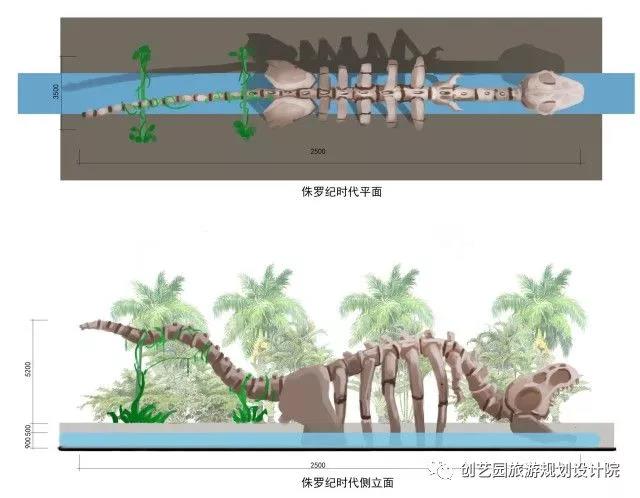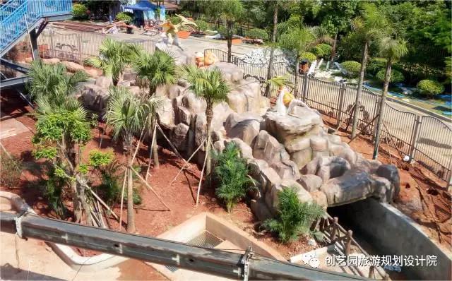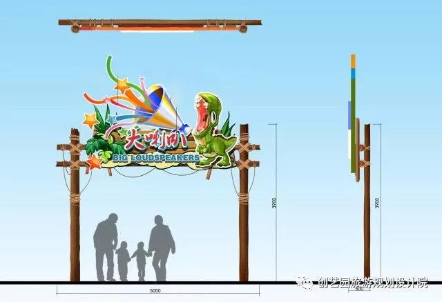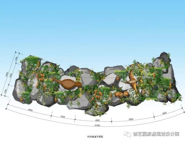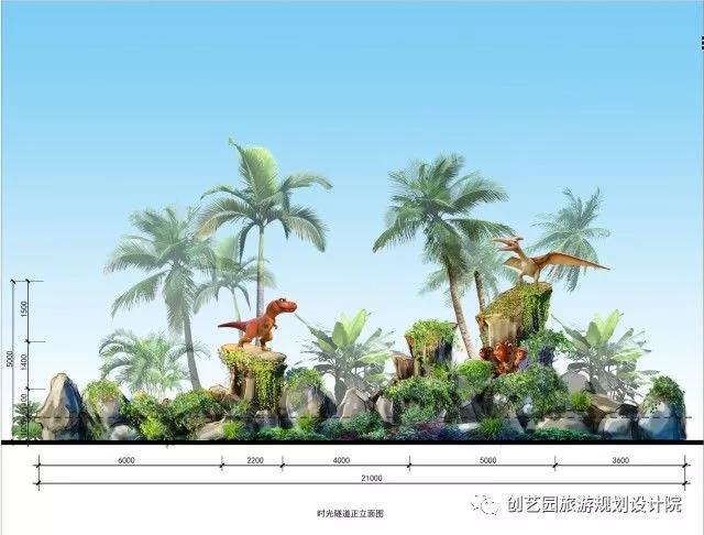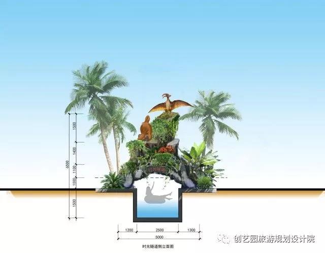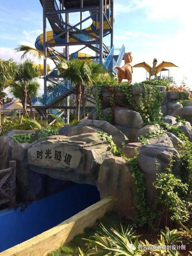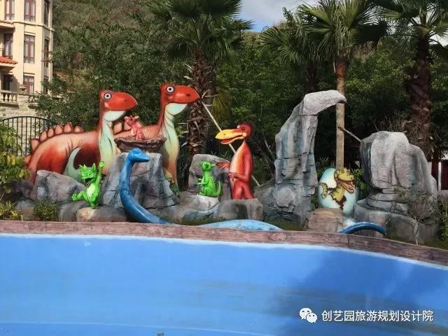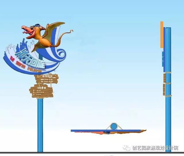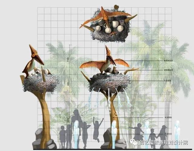 另为提升游玩体验,增强欢乐互动,创艺园设计团队还设计了一系列具有特色的小品,包括侏罗纪时代、时光隧道、沙滩游戏遮阳棚、漂流河上下水雕塑、旱喷广场雕塑以及精致标牌标牌