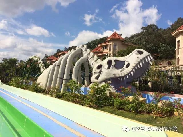 河源恐龙欢乐水世界的规划设计是以恐龙文化为灵感,结合恐龙品种、形态、功能打造的以水上娱乐体验产品为核心,集竞技拓展、文艺表演、休闲观光及水上玩乐于一体的水上乐园。在规划结构上,“以动为主、以静为辅、动静交替”的设计思路,重在打造河源人自己的玩水世界。在这里,游客既可体验到丰富刺激的水上游乐项目,又可以观赏到精彩纷呈的文艺表演。