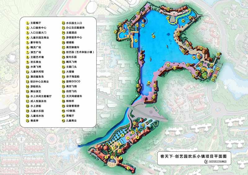 创艺园欢乐小镇由八大板块近60多个项目组成,八大板块分别为:虫虫嘉年华、主题演艺、昆虫部落、艺术DIY小镇、主题酒店、水上乐园、室内海洋馆、室内动漫乐园。为青少年、小朋友及家长们量身打造的休闲小镇,是国内首创,是寓教于乐基地、科普基地,是第二课堂,是家长与孩子们欢乐的海洋。