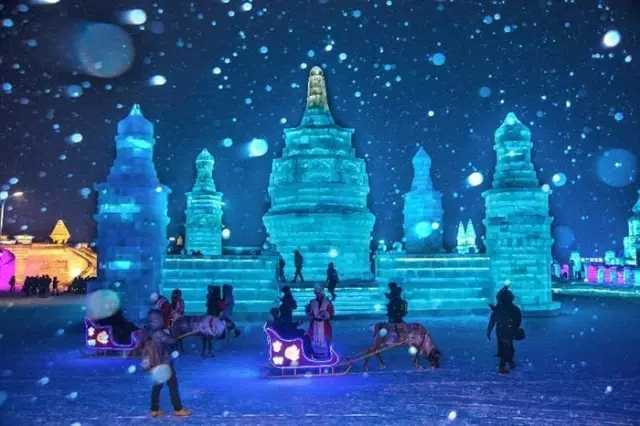 冰雪主题乐园里的建筑除了满足作为基础设施的要求之外,还要配合主题乐园的景观特色,使建筑呈现出艺术欣赏性的特色,与冰雪景观相映成辉,给单调的白色景观中增添了其他的色彩。