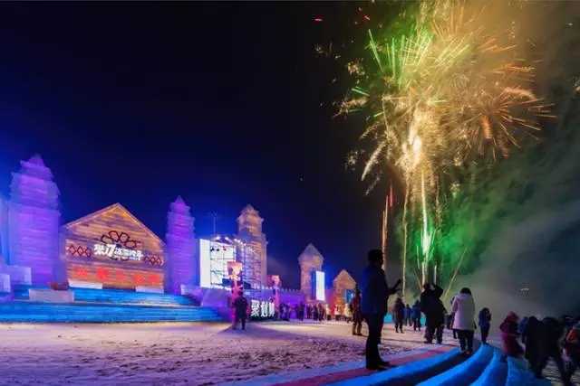 如可以利用建筑的群体组合,形成具有地方特色的小吃街和民俗村。在哈尔滨,工作人员曾将无数把红伞置于冰天雪地之上,无数红色绸带在树木间缠绕游动,给静的冰雪环境带来灵气与活力。这些动态景观的设计在很大程度上抵消了冰雪环境给人带来的冷清单调的感受,成为白色主体环境设计中的点睛升华之笔。