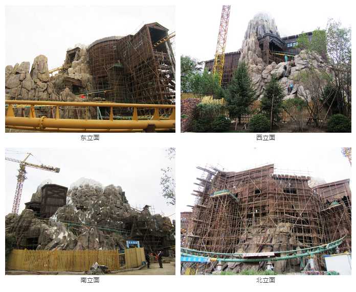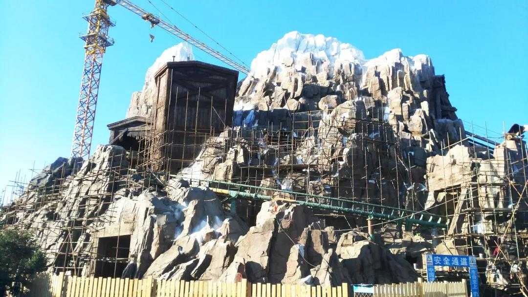 该项目主体工程为水泥直塑仿大雪山外包装,其人造大雪山高度为44.5米,相当于15层楼高,加上山体异形(不规则),施工难度系数远大于主体建筑施工。