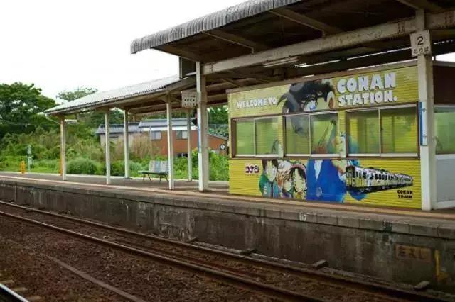 除此之外,鸟取县甚至将车站名称也改为“柯南站”,并为它装扮上柯南的展示牌。买一张车票,和小镇的人们一起在站台上等待,伴随着悠扬的鸣笛声,黄色的柯南专列缓缓而来。