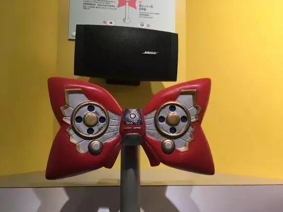 旁边的蝴蝶结变声机和动画片里的一样,只要对着蝴蝶结说话,同时旋转旁边的按钮,再次播放出来的声音则变了调,完全听不出是一个人。这就是柯南在分析案情时,为了隐藏年幼的身份而使用的变声道具。