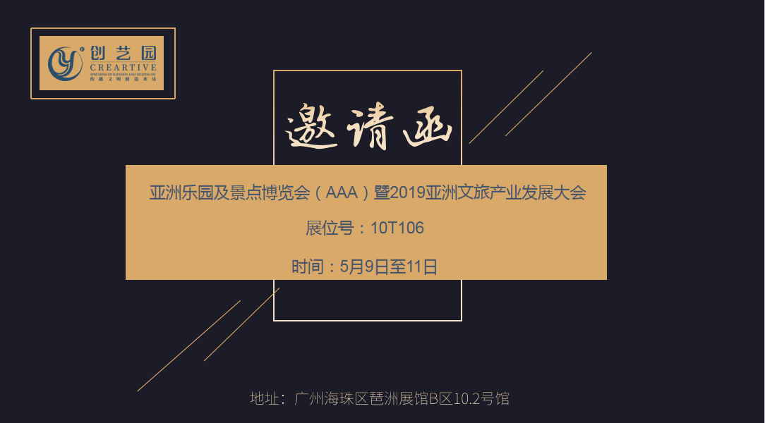 2019年5月9-11日亚洲乐园及景点博览会(AAA)将在中国广州广交会展馆举行。届时,创艺园核心团队在B区10T106展台欢迎业界新老朋友莅临!